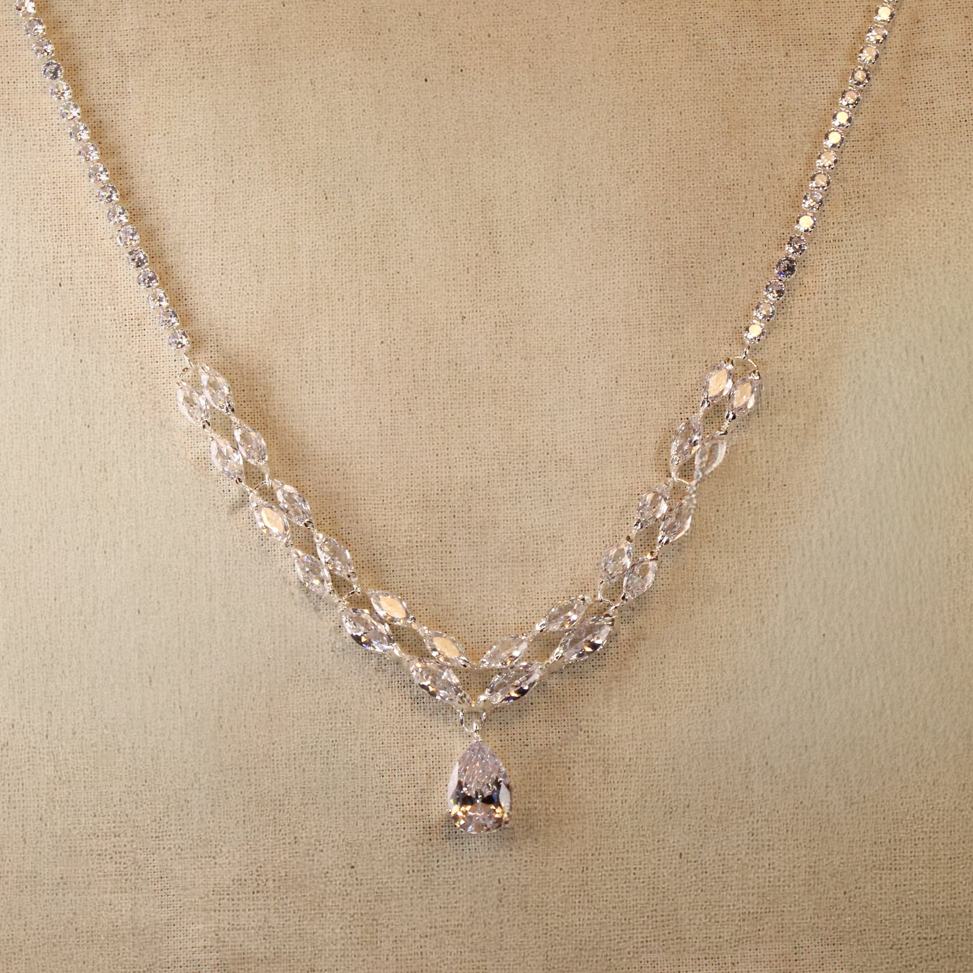 Cuando te lo regalas a ti misma, este collar se vuelve un recordatorio luminoso de todo lo que has logrado sola. Cada zirconia brilla como una victoria personal, y la trenza de luz que abraza tu cuello dice sin palabras: “me elijo, me celebro, me merezco este brillo”. La gota central cae justo sobre el pecho como un pequeño faro íntimo, conectándote con tu propia energía y recordándote que tu presencia basta para iluminar una habitación.